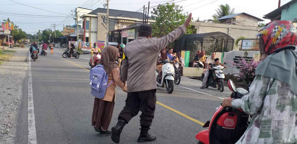Aceh Barat Daya – Personil Polsek Manggeng Polres Aceh Barat Daya melaksanakan kegiatan rutin Strong Point di Depan Sekolah MIN, MTsN dan MAN Manggeng, Kecamatan Manggeng, Kabupaten Aceh Barat Daya. Jum’at (09/08/2024)