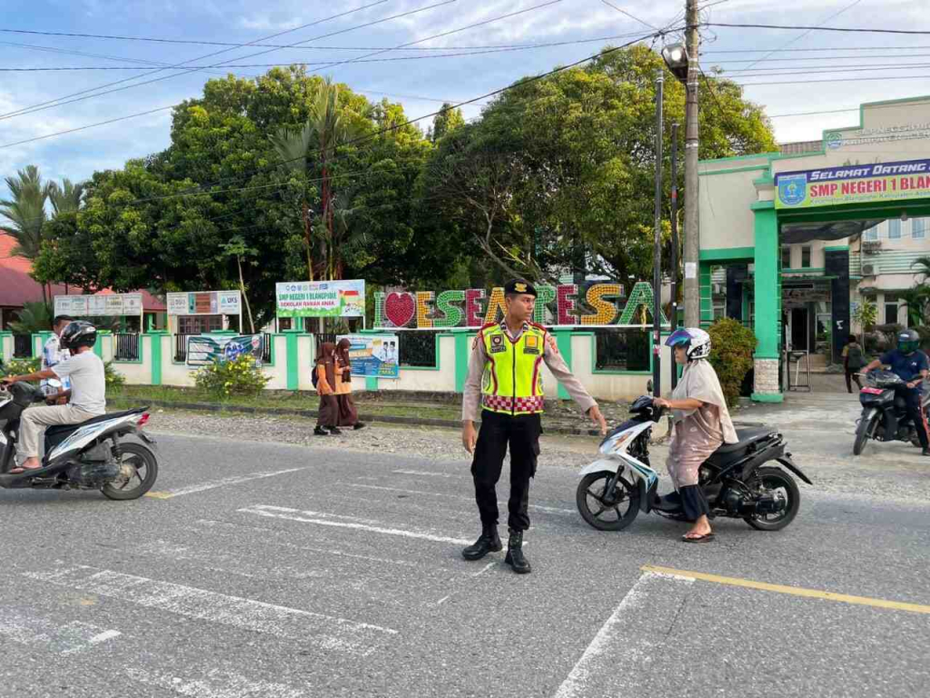 Aceh Barat Daya – Personel Sat Samapta Polres Aceh Barat Daya (Abdya) laksanakan kegiatan strong point dengan melakukan penjagaan dan pengaturan lalu lintas di seluruh titik rawan lakalantas, rawan kemacetan, pusat keramaian serta lokasi persekolahan. Strong point ini digelar di lingkungan sekitar sekolah yang berada di wilayah hukum Polres Abdya. Sabtu (13/01/2024).