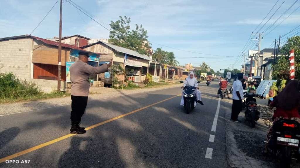 Aceh Barat Daya – Personil Polsek Manggeng Polres Aceh Barat Daya melaksanakan kegiatan rutin Strong Point di Depan Sekolah MIN, MTsN dan MAN Manggeng, Kecamatan Manggeng, Kabupaten Aceh Barat Daya. Kamis (07/11/2024)