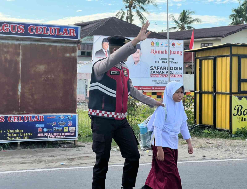 Aceh Barat Daya – Personel Sat Samapta Polres Aceh Barat Daya (Abdya) laksanakan kegiatan strong point dengan melakukan penjagaan dan pengaturan lalu lintas di seluruh titik rawan lakalantas, rawan kemacetan, pusat keramaian serta lokasi persekolahan. Strong point ini digelar di lingkungan sekitar sekolah yang berada di wilayah hukum Polres Abdya. Senin (02/12/2024).
