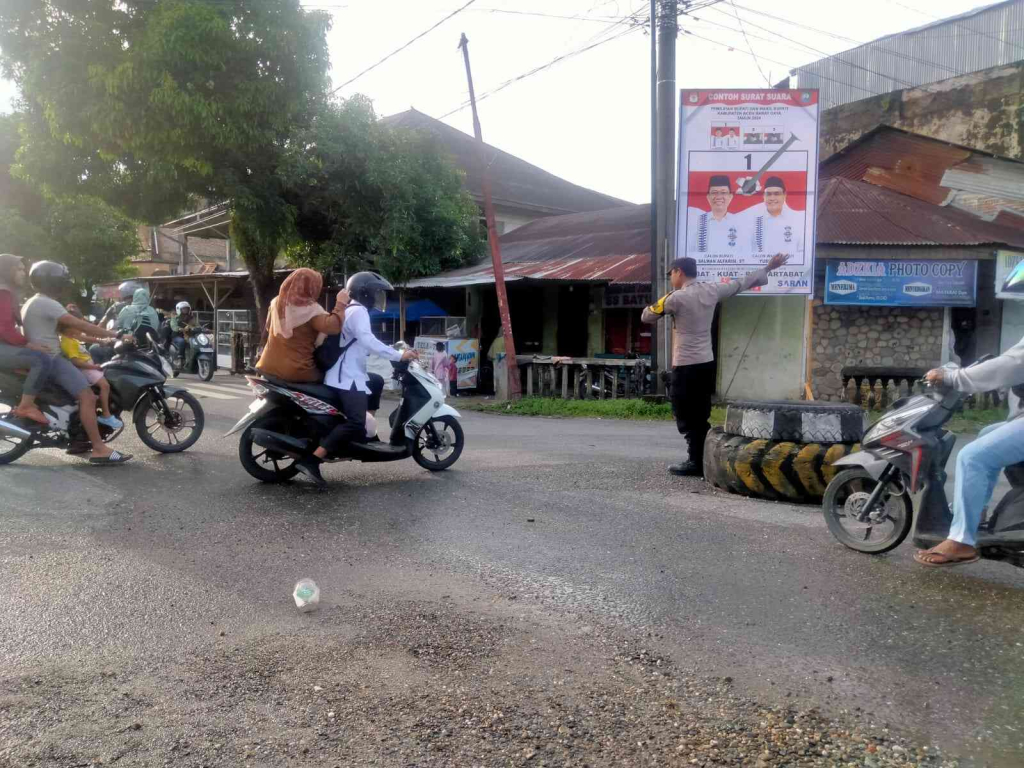 Aceh Barat Daya – Personil Polsek Blangpidie Polres Aceh Barat Daya melaksanakan kegiatan rutin Strong Point pagi pada pukul 07.25 Wib s/d selesai di Simpang Empat Jalan Irian Desa Meudang Ara Kecamatan Blangpidie, Kabupaten Aceh Barat Daya. Jum’at (11/10/2024).
