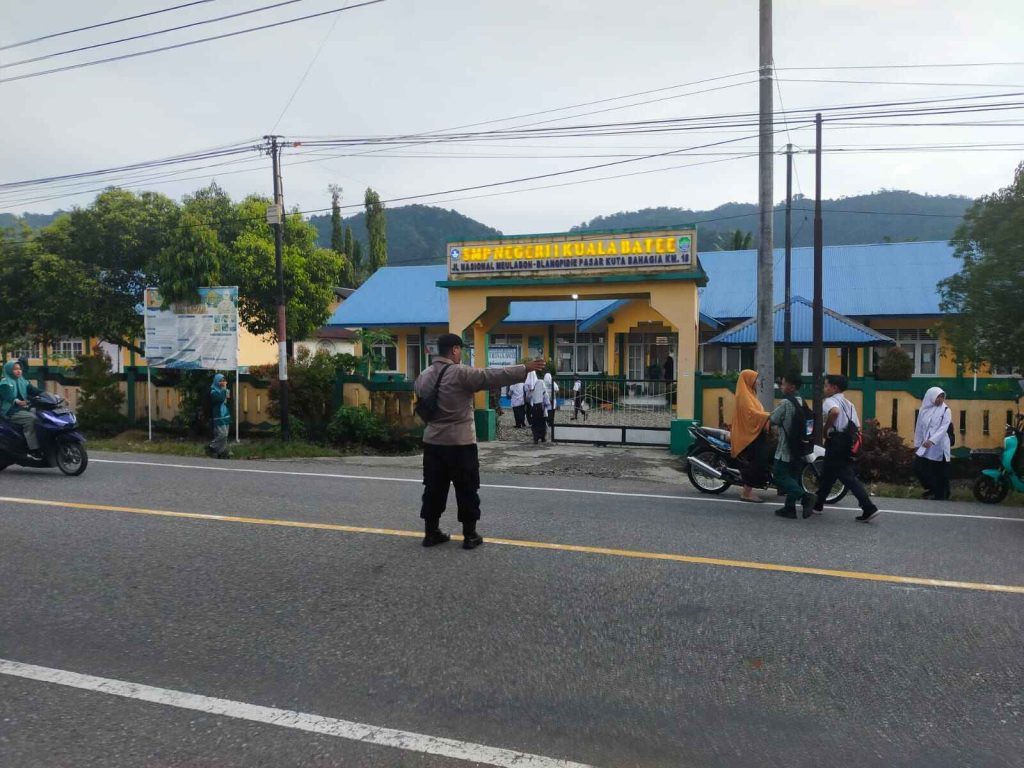 PERSONIL POLSEK KUALA BATEE POLRES ABDYA MELAKSANAKAN KEGIATAN STRONG POINT PAGI HARI GUNA MENCIPTAKAN SITUASI AMAN BAGI ANAK SEKOLAH