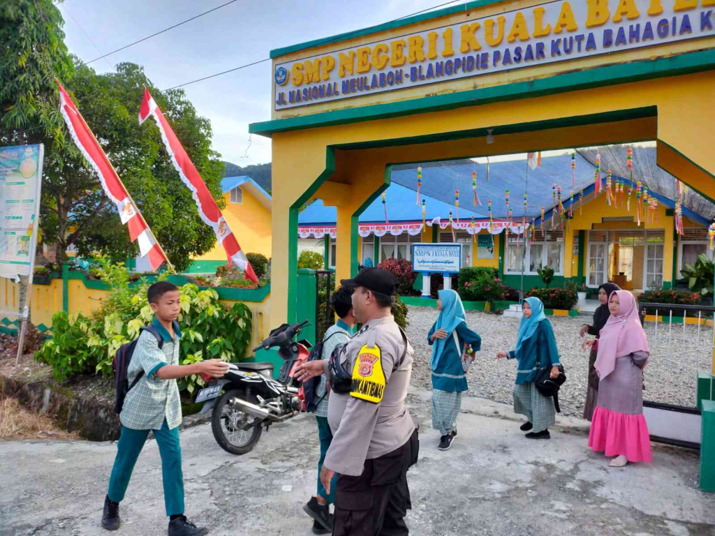 Aceh Barat Daya – Personil Polsek Kuala Batee Polres Aceh Barat Daya melaksanakan kegiatan rutin Strong Point pagi pada pukul 07.00 Wib s/d selesai di Depan SMP Negeri 1 Kuala Batee, Kecamatan Kuala Batee, Kabupaten Aceh Barat Daya. Rabu (20/09/2023).