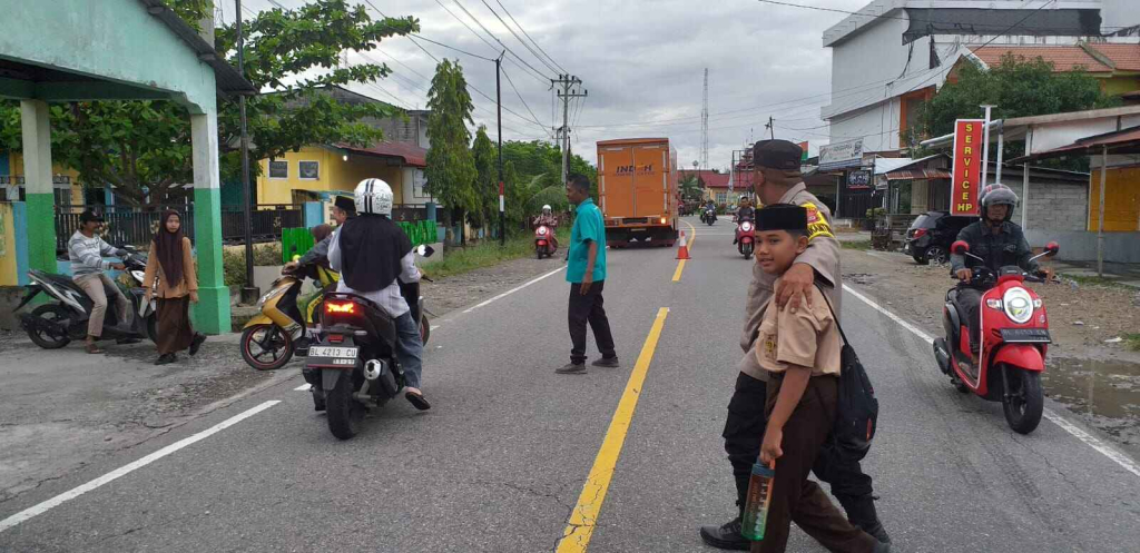 Aceh Barat Daya – Personil Polsek Manggeng Polres Aceh Barat Daya melaksanakan kegiatan rutin Strong Point di Depan Sekolah MIN, MTsN dan MAN Manggeng, Kecamatan Manggeng, Kabupaten Aceh Barat Daya. Jum’at (18/10/2024)