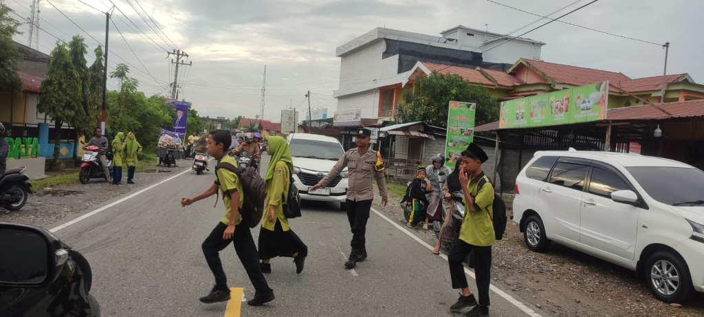 PERSONIL POLSEK MANGGENG POLRES ABDYA BERIKAN RASA AMAN BAGI ANAK SEKOLAH MELALUI GIAT STRONG POINT