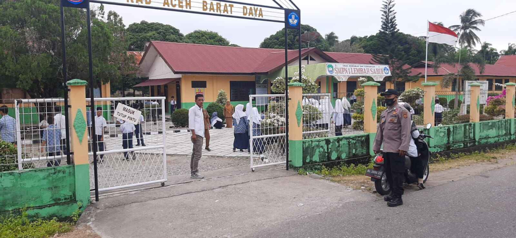 Aceh Barat Daya – Personil Polsubsektor lembah sabil Polres Aceh Barat Daya melaksanakan kegiatan rutin Strong Point pagi di depan SMP N 1 Lembah Sabil, Kecamatan Lembah Sabil, Kabupaten Aceh Barat Daya. Rabu (20/09/2023).