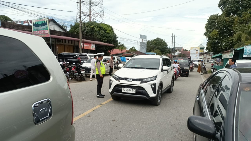 PERSONIL SAT LANTAS POLRES ACEH BARAT DAYA LAKSANAKAN KEGIATAN PENGATURAN ARUS LALU LINTAS DI JLN NASIONAL BLANGPIDIE-TAPAKTUAN