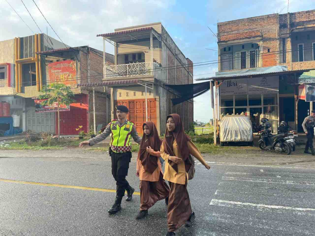 PERSONIL SAT SAMAPTA POLRES ABDYA GELAR GIAT STRONG POINT GUNA MENCIPTAKAN SITUASI AMAN BAGI ANAK SEKOLAH
