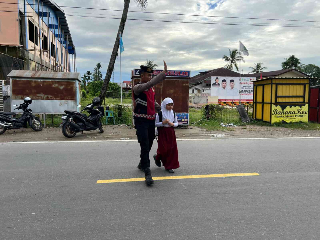 Aceh Barat Daya – Personel Sat Samapta Polres Aceh Barat Daya (Abdya) laksanakan kegiatan strong point dengan melakukan penjagaan dan pengaturan lalu lintas di seluruh titik rawan lakalantas, rawan kemacetan, pusat keramaian serta lokasi persekolahan. Strong point ini digelar di lingkungan sekitar sekolah yang berada di wilayah hukum Polres Abdya. Selasa (15/10/2024).