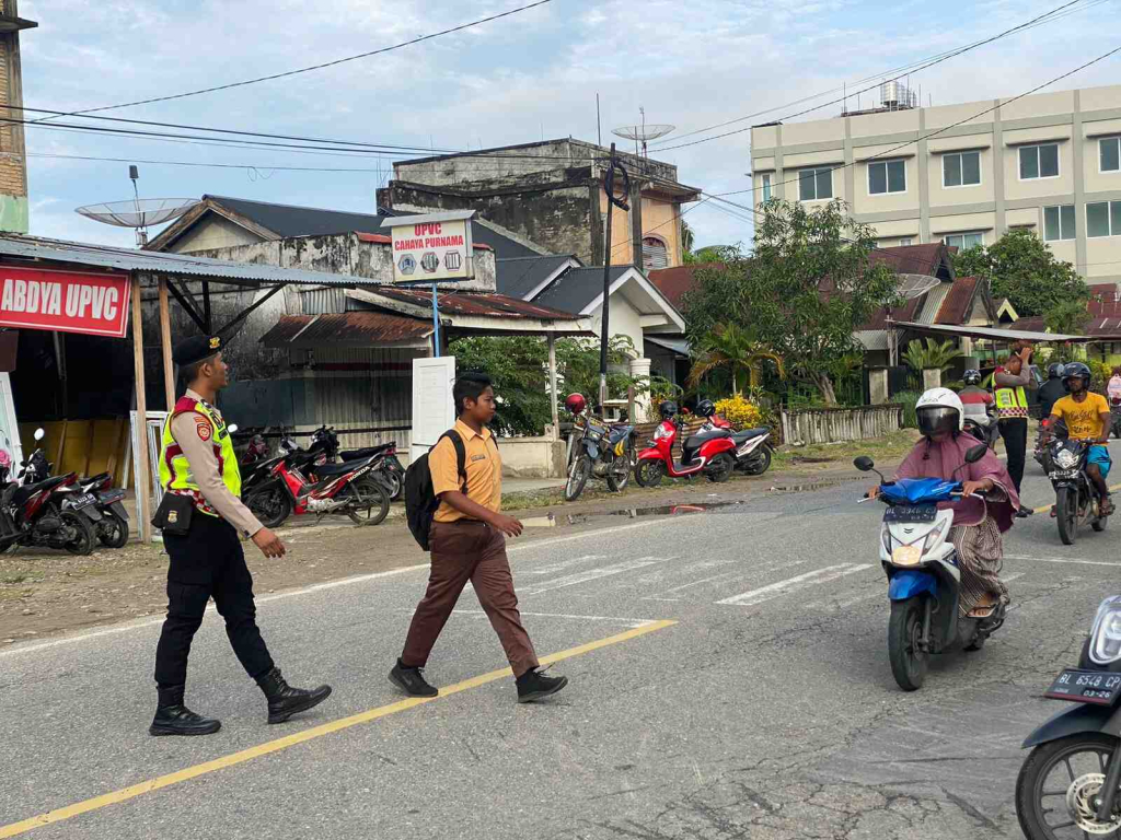 Aceh Barat Daya – Sat Samapta Polres Aceh Barat Daya melaksanakan kegiatan strong point pagi dengan melakukan penjagaan dan pengaturan lalu lintas pada pukul 07.00 Wib di depan SDN 1 Blangpidie, SMPN 1 Blangpidie dan diseluruh titik rawan lakalantas, kemacetan, pusat keramaian di wilayah hukum Polres Aceh Barat Daya. Jum’at (06/10/2023).