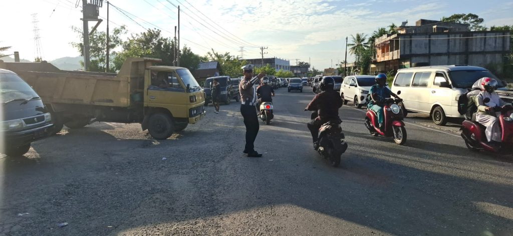 SAT LANTAS POLRES ABDYA GELAR STRONG POINT GUNA CEGAH KEMACETAN DAN LAKALANTAS
