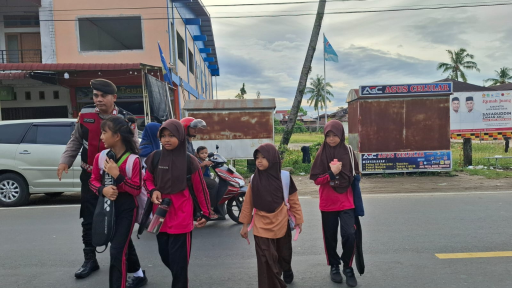 Aceh Barat Daya – Personel Sat Samapta Polres Aceh Barat Daya (Abdya) laksanakan kegiatan strong point dengan melakukan penjagaan dan pengaturan lalu lintas di seluruh titik rawan lakalantas, rawan kemacetan, pusat keramaian serta lokasi persekolahan. Strong point ini digelar di lingkungan sekitar sekolah yang berada di wilayah hukum Polres Abdya. Jum’at (15/11/2024).