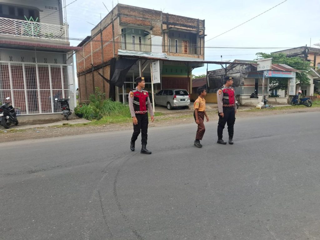 SAT SAMAPTA POLRES ABDYA MEMBERIKAN RASA AMAN BAGI ANAK SEKOLAH DAN PENGGUNA JALAN LAINNYA MELALUI GIAT STRONG POINT PAGI